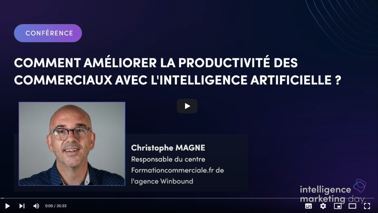 Lors d’Intelligence Marketing Day, Christophe Magne, responsable des formations commerciales chez Yumens BtoB (ex-Winbound), a partagé ses insights sur l’adoption de l’IA et la nécessité d’offrir une formation commerciale IA à vos équipes de vente. Découvrez la conférence en replay.